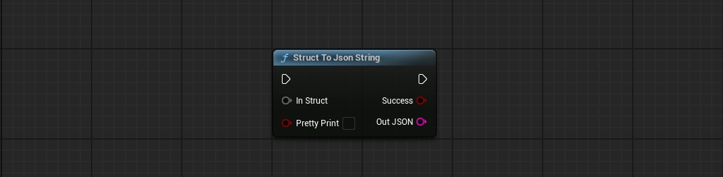 Converts any given Unreal Engine Struct into a JSON-formatted string. This node serializes all the fields of the struct into a valid JSON text format, making it suitable for saving to files, sending over a network, or logging.