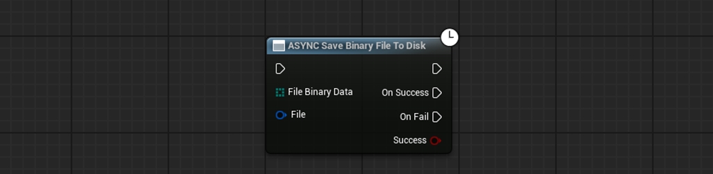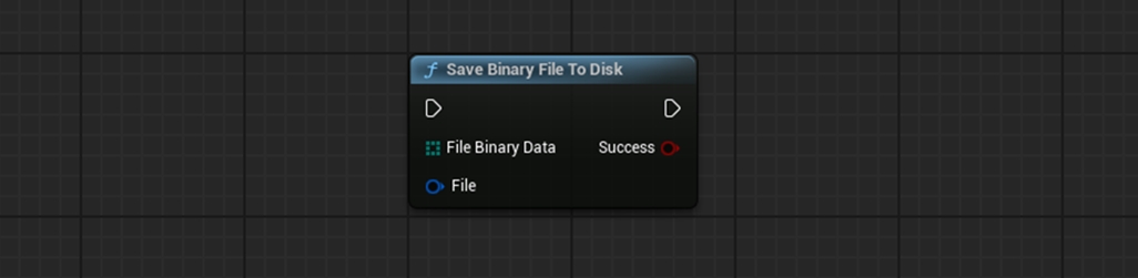 Warning: Previewing the "File Binary Data" array may cause lag. The array can be extremely large, depending on the file size. This node lets you save any binary file from Unreal Engine directly to the users machine.